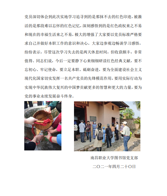 南昌职业大学图书馆党支部组织党员赴苏区学党史