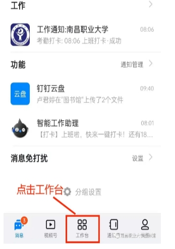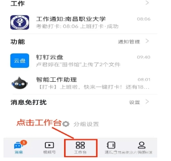 打开钉钉系统——点击“工作台”——点击“图书查询”。
