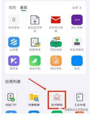 (1).教师荐购途径:打开钉钉——点击“工作台”——选择“教师服务”——点击“图书荐购”