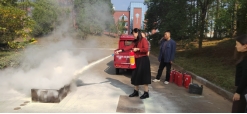 发言结束后,校领导与嘉宾向现场师生发放消防宣传手册,手册中校园防火要点、逃生技巧等实用内容,为大家提供了系统的消防知识指引。最受期待的灭火实操演训环节紧随其后,安义县消防救援大队的消防员现场演示灭火器使用方法,讲解灭火核心要领。图书馆老师踊跃参与,亲手操作灭火器扑灭模拟火源,在实操中巩固理论知识。他们纷纷表示,亲身实践让消防知识不再抽象,更真切体会到防火自救的重要性,未来会积极向身边人传递消防常识。