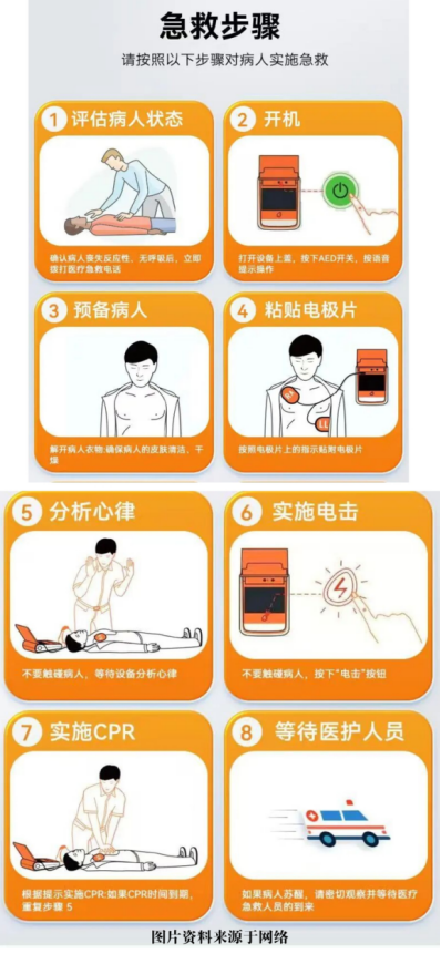AED仅可在心脏骤停等紧急医疗救护场景下启用,非紧急情况请勿随意触碰或移动。